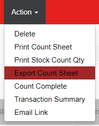 Once the page has loaded, hover over 'Action' once more and select 'Export Count Sheet'.